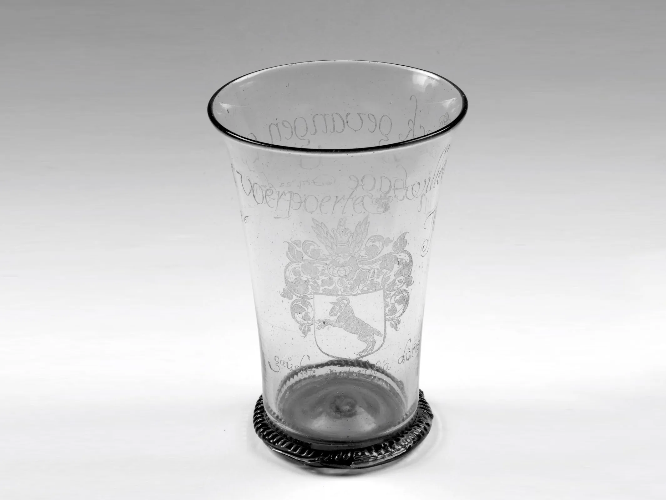 Dit bijzondere glas is een herinnering aan de gevangenschap van Willem Fonck, die in 1596-1597 in de Gevangenpoort heeft verbleven. Willem Fonck was afkomstig uit Brugge en werd in 1596 in Amsterdam aangehouden. Uit documenten die hij bij zich had, meende men op te maken dat hij door aartshertog Albert, gouverneur van de Zuidelijke Nederlanden, was gestuurd om overleg te plegen met de graven van Oost-Friesland. De Republiek der Verenigde Provinciën was op dat moment in oorlog met Spanje en de Zuidelijke Nederlanden en men vreesde nadeel van de missie van Fonck. Op verdenking van spionage werd hij overgebracht naar de Gevangenpoort, waar hij bedreigd werd met tortuur. Door tussenkomst van landsadvocaat Johan van Oldenbarnevelt kwam hij uiteindelijk op vrije voeten: hij werd geruild tegen een krijgsgevangene die in Den Bosch zat.